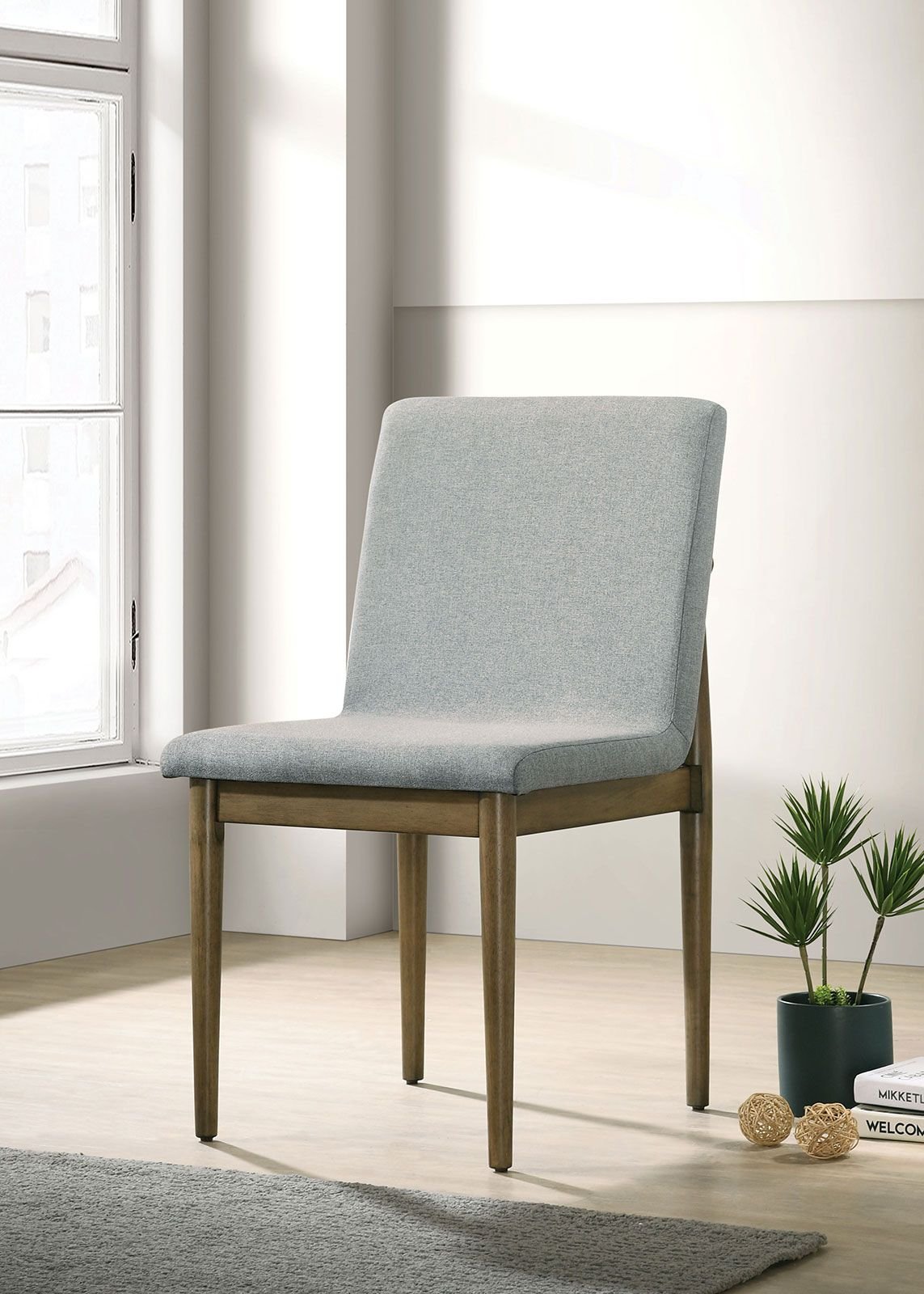 Description:-This dining chair is a perfect addition to any casual dining room, with its straightforward design that will leave a lasting impression on your family and friends. Sit comfortably on padded seats and backs with welts--their warm beige fabric blending perfectly with the warm natural tone finish.Product Dimensions:-Dining Side Chairs - 19"W X 22 3/4"D X 34 1/2"H (SEAT HT:19 1/4", SEAT DP:15 1/4" )Listing Includes :- Set of 2pc Side Chairs Only.DINING TABLE - NOT INCLUDED.Simple assembly require.Product Features:-Mid-century ModernNatural Tone/Light GrayFabric, Solid WoodUpholstered Fabric SeatRound Tapered Legs