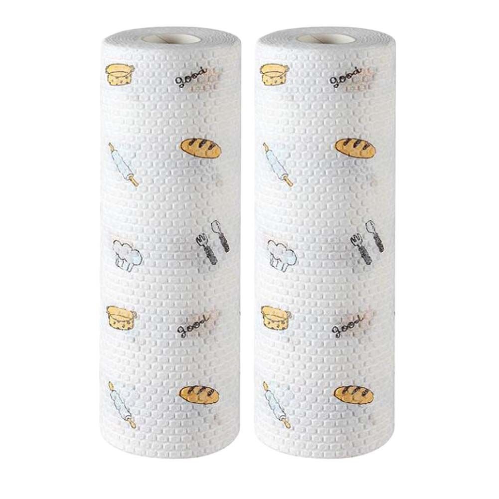 2 Rolls Disposable Household Kitchen Paper Towels Printed Dish Cloths Kitchen Paper Tissue