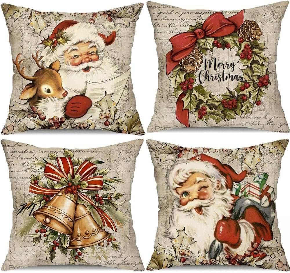 DFXSZ Christmas Pillow Covers 18x18 inch Set of 4 Santa Claus Reindeer Decorative Vintage Throw Pillow Covers Winter Retro Farmhouse Decoration for Ho DFXSZ Christmas Pillow Covers 18x18 inch Set of 4 Santa Claus Reindeer Decorative Vintage Throw Pillow Covers Winter Retro Farmhouse Decoration for Ho DFXSZ Christmas Pillow Covers 18x18 inch Set of 4 Santa Claus Reindeer Decorative Vintage Throw Pillow Covers Winter Retro Farmhouse Decoration for Ho