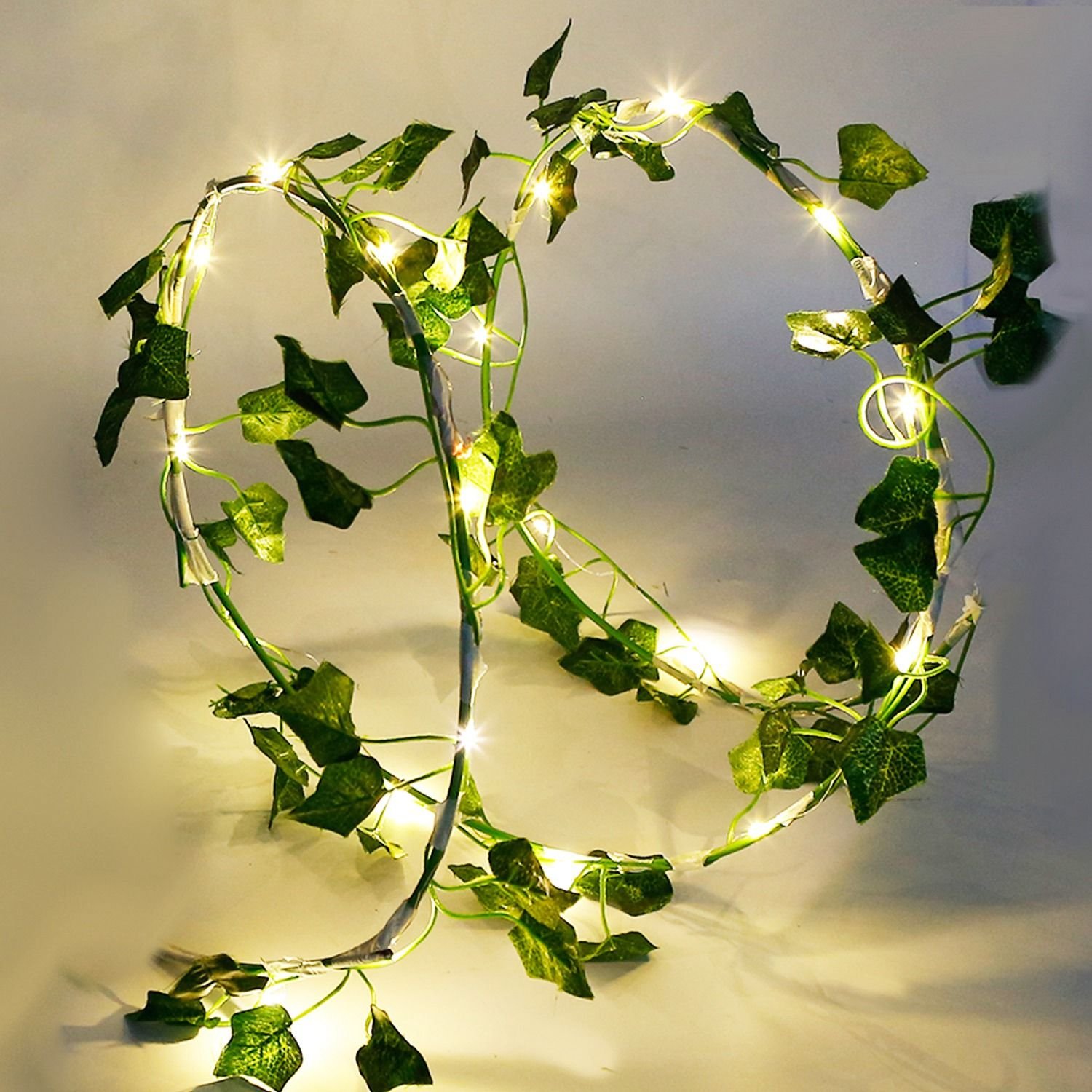 **Lifelike Ivy Leaves*:Featured with exquisite dyeing process,the artificial ivy leaves have clear veins and natural and fresh green. 360Pcs leaves and 100Pcs warm LED beads dotted in 32.8ft copper string reduce your work pressure and bring you a warm family. Fake ivy does not need watering,pruning,and other care,no need to worry about that the vines will die.