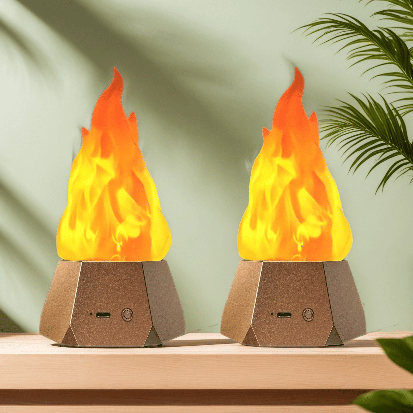 Realistic 3D Holographic Flame Technology: Create a mesmerizing campfire ambiance indoors with lifelike flickering movement. Mimics authentic fire without smoke, heat, or safety risks — safe for homes with kids and pets.