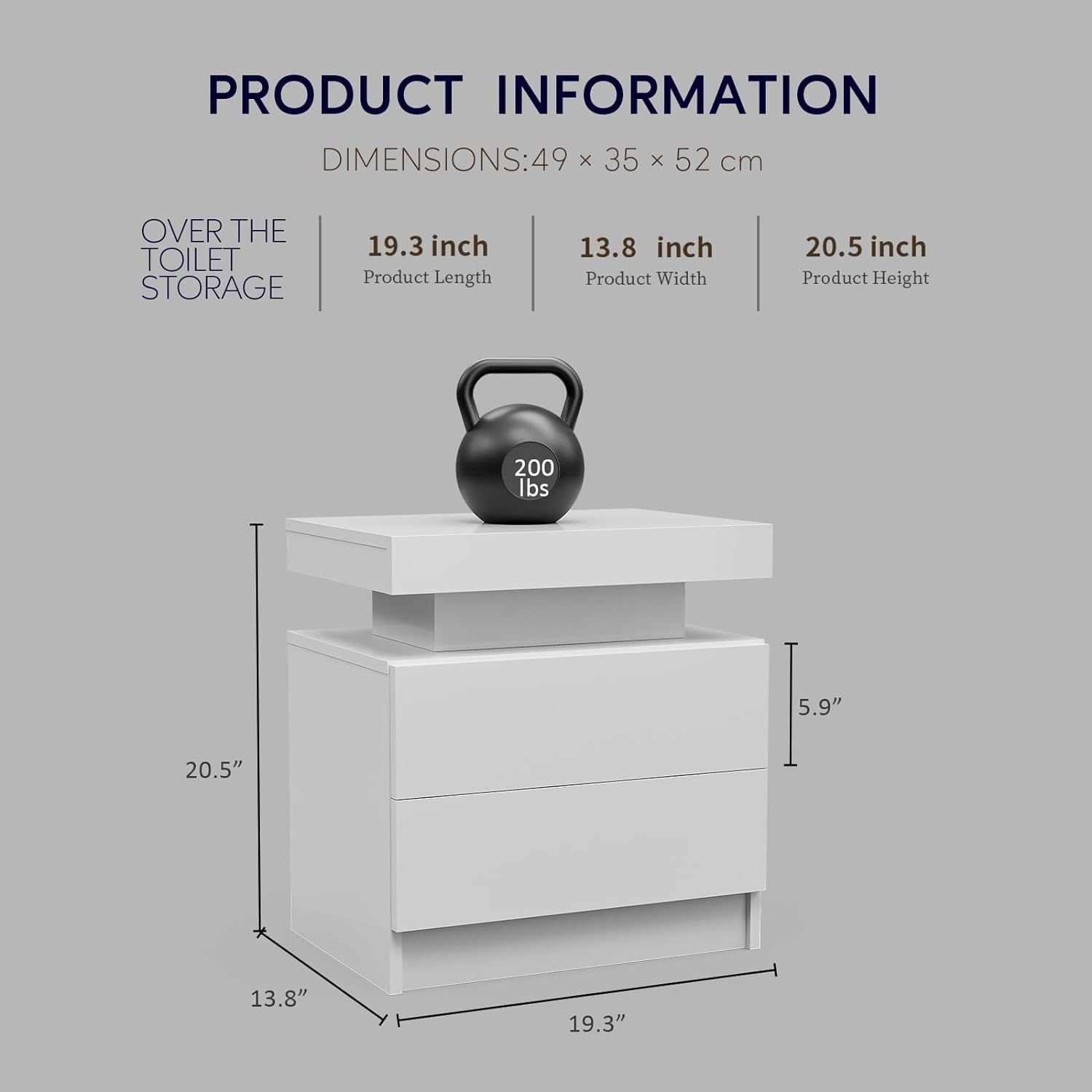Nightstand LED Bedside Table Cabinet Lights Modern End Side with 2 Drawers for Bedroom (White)