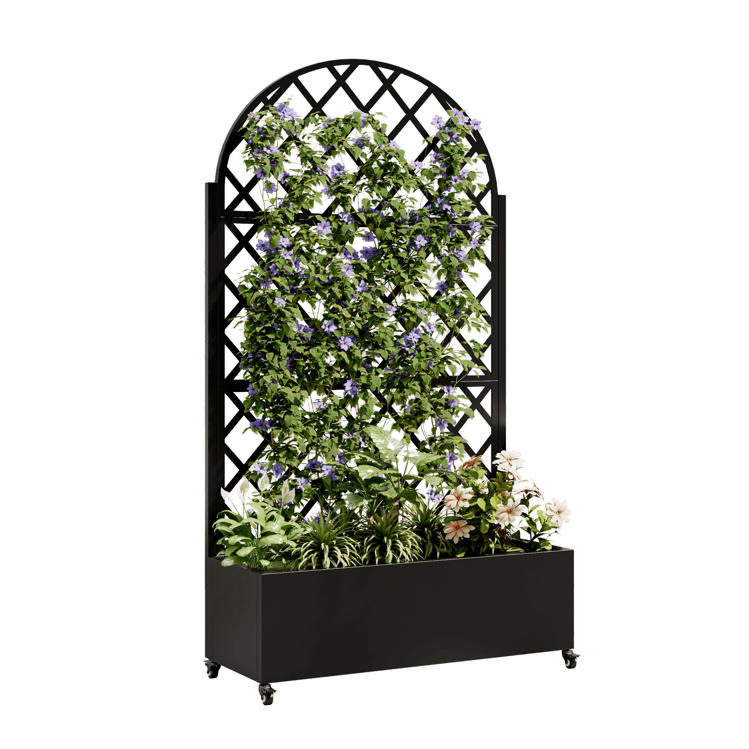 Home > round Metal Planter Box with Trellis Raised Garden Bed with 4 wheelsTrellis & Privacy Screen for Climbing Plants, Vegetables, Vines