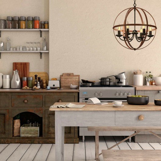 6-Light Orb Chandelier Rustic Vintage Ceiling Lamp